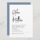 Ces invitations de mariage blanches, élégantes et minimalistes, comportent des lettres noires typographiques modernes et des lettres sans serif propres pour un style simple et élégant avec un bleu poussiéreux sur le dos de l'invitation que vous et votre invité aimerez.