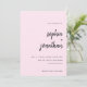 Ces invitations de mariage élégantes et minimalistes sont caractérisées par une typographie de script moderne et un texte sans serif propre, pour un design simple et élégant rose et noir que vous aimerez.