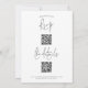 Script moderne QR Code Mariage photo All in One. Une invitation élégante et pratique, accompagnée de deux codes QR à l'arrière, que vos invités peuvent scanner à RSVP via l'un et voir tous les détails via l'autre. Vos codes QR seront automatiquement générés lorsque vous changerez les exemples d'URL vers ceux de vos propres URL de page de site mariage. Une typographie informelle en noir pour le titre principal Le Mariage de compléter le reste du texte que vous pouvez facilement personnaliser. Remplacez l'exemple de photo par votre préféré.