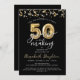 Invitation moderne et festive de 50ème anniversaire avec le titre Vous êtes invité à une fête 50 ANS DANS LE MAKING en calligraphie script typographie et faux numéros de ballon d'or métallique et des serpentins d'or et confettis et lumières blanches dans votre choix de couleur arrière - plan (montré en noir). ASSISTANCE : Pour obtenir de l'aide sur la modification ou la personnalisation de la conception, le changement de couleur, le transfert de la conception vers un autre produit ou si vous souhaitez coordonner des éléments, contactez le concepteur AVANT de commander par Zazzle Conversation ou par courriel makeitaboutyoustore@gmail.com.