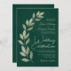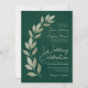Ces faire-part de mariage présentent un design moderne avec du texte justifié droit et une pointe de feuilles peints à la main dans les tons vert sauge. Le lettrage comporte une police de caractères moderne et l'arrière - plan vert émeraude marbré ajoute texture et profondeur. Simple, rustique, unique et chic, cette invitation est une excellente façon d'ajouter le style contemporain à l'élégance classique.