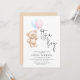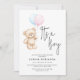 Célébrez la joie d'un nouveau bébé avec cette adorable invitation baby shower d'ours en peluche. Le design comprend un ours en peluche doux tenant des ballons au sommet et l'expression ludique "It's Boy" dans un script manuscrit moderne. Parfait pour la douche bébé garçon. Facile à personnaliser avec les détails de l'événement. Disponible sous forme de carte imprimée ou de téléchargement numérique pour un partage rapide et pratique. Correspondance des éléments disponibles