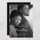 Cette élégante invitation de mariage comprend un script manuscrit blanc moderne et votre photo personnelle préférée pour un look simple mais glamour. Le dos de l'invitation est d'une couleur noire riche.