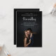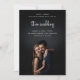 Cette élégante invitation à un mariage présente une écriture manuscrite blanche moderne et votre photo personnelle préférée pour un look simple mais glamour. Le dos de l'invitation est d'une couleur noire riche.