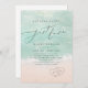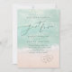 Beau turquoise abstraite aquarelle scintillante vague d'océan et les coeurs dans l'arrière - plan de plage de sable, surmonté d'un script élégant et d'élégante police serif, moderne et simple. Super rien de fantaisie juste amour faire-part de mariage pour mariage nautique intime plage, mariage de destination tropicale, mariage sur le thème de l'océan côtier en été.