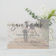 Ce mariage photographique moderne sauvez la carte à plat date a un design chaleureux et minimaliste. Le texte du script au-dessus de vos prénoms et de votre date est animé. Sur le dos, nous avons défini l'arrière - plan comme transparent, de sorte que la couleur du papier servira de couleur de base. Vous pouvez choisir une couleur pour l'arrière - plan, si vous préférez. Vous pouvez également modifier le texte en fonction de vos besoins. Vous pouvez vouloir supprimer un champ de texte dont vous n'avez pas besoin, ou modifier la couleur ou la police d'un texte. Utilisez les outils de design intuitifs, votre photo préférée et votre inspiration pour faire de ce mariage élégant enregistrer la carte à plat date uniquement la vôtre!