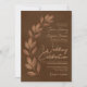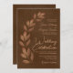 Ces faire-part de mariage présentent un design moderne avec du texte justifié droit et une pointe de feuilles d'automne peintes à la main dans les tons de rouille orange et de bois brûlé. Le lettrage est composé d'une police de caractères moderne et l'arrière - plan marbré marron de châtaignier ajoute texture et profondeur. Simple, rustique, unique et chic, cette invitation est une excellente façon d'ajouter le style contemporain à l'élégance classique.