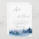 Invitation Script moderne Indigo Watercolor Mariage paysager