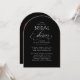 Donnez le ton unique pour votre célébration romantique avec cette invitation en forme d'arc noir à la photo de la douche nuptiale. Un arrière - plan noir profond et une calligraphie fluide créent une atmosphère élégante et intime, tandis que l'option de mettre une photo sur le dos ajoute une touche personnelle et moderne de luxe. Chaque détail peut être customisé pour refléter votre style, des polices et des couleurs à l'ajout de vos propres photos. Avec une variété de formes et de finitions en papier premium, cette invitation est conçue pour se sentir aussi mémorable et élégant que la soirée spéciale qu'elle représente.