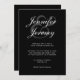 Ces élégantes invitations de mariage personnalisées présentent un design de script de calligraphie moderne et minimaliste blanc et gris sur un simple arrière - plan noir. Personnalisez avec vos noms et votre date de mariage avec toutes les informations de votre mariage au dos de l'invitation. Meilleurs voeux pour votre mariage et mariage ! Conçu par Susan Coffey.