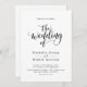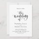 Cette élégante faire-part de mariage en noir et blanc conviendra parfaitement à une mariage moderne. Le design simple présente une élégante calligraphie noire sur un arrière - plan blanc propre. La carte d'invitation comprend les détails du mariage au dos au lieu de payer une carte d'enceinte séparée.