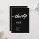 Célébrez en style avec notre moderne minimal noir noir Script 30th Birthday Invitations! Simple, minimaliste et élégant dans la typographie de script noir et blanc. Faites de votre anniversaire un événement inoubliable avec cette invitation parfaite pour un anniversaire adulte. Utilisez les détails de la section "Personnalisez ce modèle" pour ajouter vos informations et choisissez entre des tirages ou un téléchargement d'invitation numérique écologique. Design original par Ana Garza/Kardz Studio. Si vous avez des questions, veuillez me contacter par l'intermédiaire du conversation Zazzle.