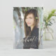 Ce design carte photo classique comprend une photo à fond saigné et "gradué" en faux or brillant sur le devant avec beaucoup de place sur le dos pour une invitation à une fête de remise de diplômes ou à la cérémonie de début. Customisez-le pour changer la couleur de l'arrière - plan pour correspondre à votre photo ou aux couleurs de l'école!