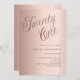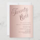 Une invitation design et moderne pour une fête de 21e anniversaire. arrière - plan rose dégradé d'or et le mot Vingt et un écrit avec d'élégantes grandes lettres de script en or rose foncé. Personnalisez et ajoutez un nom et des détails du parti.