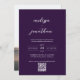 Invitation Script photo moderne prune violet QR Code Mariage
