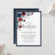Invitation Script QRCode Marine Bleu Bourgogne Floral Aquarel