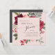 Beau bouquet nuptial aquarelle, avec des fleurs aux riches nuances de rouge et de rose, paré de botaniques vert argent. Vos détails de douche, en belles polices...vous recevrez une invitation de rêve et vous y répondront avec plaisir.