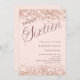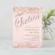 Une invitation Sweet 16 moderne. Un arrière - plan rose pâle et doux et le mot Seize écrit avec de grandes lettres. Décoré de faux étincelles, confettis. Personnalisez et ajoutez un nom et des détails du parti.