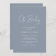 Baby shower bleu poussiéreux moderne invitation avec un design simple avec "Oh Baby" dans un style rustique typographie script. Cette invitation élégante à la disposition minimaliste est parfaite pour un baby shower garçon.