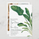 Scénario de verdure tropicale faire-part de mariage de palmier avec aquarelle exotique oiseau de verdure du paradis illustration plante et une élégante typographie de police de pinceau. Parfait pour la fête du mariage d'été du printemps, ajoutez 3 de vos photos préférées à l'arrière.