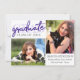 Trendy 2 photo collage style graduation horizontale modèle superposition avec accents dans une douce et chic lavande violet et palette noire violet lavande chic. Le design comprend une typographie "diplômée" de style manuscrit chic et 2 photos ainsi que le nom de la diplômée, l’école et l’année de graduation. Sur le dos, il y a des rayures de complimente et les détails de l'événement. #bound #classof2019