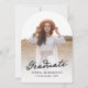 Cette invitation chic et élégante à la fête de remise des diplômes 2025 présente une photo du diplômé du collège ou du lycée. Un script noir vintage et blanc apparaît sur une superposition avec une photo du diplômé. Tous les détails de la fête de grad apparaissent en noir et blanc sur le dos, avec un script plus tendance. Un design de graduation simple et élégant pour la classe de 2025 !