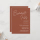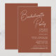 Script Whimsical Terracotta Chic Bachelorette Party Invitation Card. Célébrez votre journée spéciale avec cette belle et élégante carte de faire-part de mariage pour embellir votre occasion spéciale. Tous les textes sont pré-arrangés pour que vous personnalisiez facilement et rapidement avec vos propres détails.