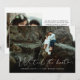 Cette carte simple et élégante d'annonce de fuite de noce comporte une photo de mariage personnelle sur le devant, avec les mots "nous avons noué le nœud" dans un style manuscrit blanc tendance avec des cœurs fantaisistes faisant partie de la typographie. Le verso de la carte comporte un espace pour une autre photo, ainsi qu'un espace pour développer les détails de votre fuite ou fournir des informations pour une réception ou une célébration après le mariage. Un design adorable qui est le moyen idéal pour informer vos amis et votre famille que vous êtes tout juste mariés !