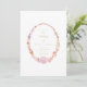 Une invitation simple et propre avec un cadre ovale fait à la main de coquilles d'aquarelle peintes à la main utilisant des nuances de pêche, rose, mauve et terre cuite. Le texte est élégant et léger en utilisant une combinaison de polices classiques en or.