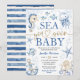Invitation Sea You Soon Baby Shower Boy Navy Blue Ocean