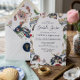 The structured layout keeps the focus on the bride while the illustrated frame adds movement and personality, creating a design that feels curated rather than templated. Paired with a coordinating patterned back, this invitation brings a cohesive, boutique stationery feel to your event.
