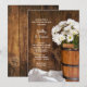Invitez les invités à célébrer les jeunes mariés le matin après leur cérémonie de mariage de style ranch avec le carton d'invitation au brunch de mariage rustique et élégant Wooden Bucket et White Daisies Country Barn. Cette invitation personnalisée pour une fête rustique chic dans une grange de ferme après le mariage pour le petit-déjeuner ou le déjeuner présente une photographie florale numérique charmante d'un seau en bois rempli de fleurs de marguerite blanche et un fond en bois de grange brun patiné.