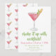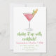 Secouez le plaisir avec cette invitation de cocktail aquarelle chic ! Avec un cosmo rose vibrant dans un style aquarelle époustouflant, cette invitation « Secouez les choses avec des cocktails » est parfaite pour une soirée entre filles, un anniversaire, un enterrement de vie de jeune fille ou une réunion de vacances. Une façon élégante de donner le ton pour une soirée de rires, de musique et de nombreux verres qui s'entrechoquent.