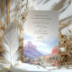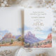 Southwestern Desert Faire-part de mariage - Sedona, Arizona Invitation vos proches pour célébrer votre mariage avec ce Faire-part de mariage Southwestern Desert, avec les formations rocheuses rouges étonnantes de Sedona, Arizona. L'avant de la carte présente une typographie élégante dans les tons chauds du taupe, du beige et du marron sablonneux, se mélangeant harmonieusement à l'aquarelle illustrant le paysage époustouflant de Sedona. L'arrière poursuit le thème avec une représentation sereine des rochers rouges emblématiques et de la végétation désertique contre un arrière - plan bleu ciel éclatant. Idéal pour les couples qui souhaitent un mariage désertique unique et pittoresque, cette invitation capte l'essence du Sud-Ouest avec ses teintes naturelles et son design sophistiqué.