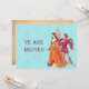 Invitations avec une illustration vintage d'un seigneur et d'une dame médiévale. Texte : "Vous êtes invités."