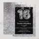 Un beau et moderne chiffre seize qui semble être tridimensionnel a des rayures zébrées à travers elle et se repose contre un arrière - plan noir bordé d'une parties scintillant faux argent et de confettis qui semble scintiller et briller. Si vous fêtez votre 16e anniversaire, c'est l'idéal. Personnalisez les modèles avec votre libellé personnalisé.