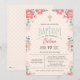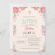 La crème, le rose clair, le corail et les verts doux ajoutent une belle palette de couleurs florales à cette invitation. Ornée d'une croix.