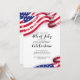 A modern and lively 4th Of July's 250th anniversary celebration from 1776 to 2026. The invitation features a cropped blowing American flag with dates 1776 - 2026 on the red stripes at the top of the invite with a mirrored blowing flag along the bottom with a celebratory ribbon font and elegant non-serif font for the details. The back features the same graphics with the words: You're Invited. All of the text is editable. Wishing you and yours a safe and wonderful July the 4th celebration.