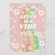 Sept est une ambiance Rétro 7ème Fille rose groovy 1970 Invitation. Changez simplement le texte pour l'adapter à votre fête. Impression au verso incluse.