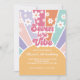 Sept est une ambiance ! Invitation d'anniversaire 7 ans inspirée du soleil rétro et de la marguerite arc-en-ciel.