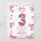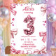 Invitation Sequins Pink Bow Three Girl Birthday