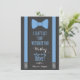 Pourquoi ne pas demander à quelqu'un d'être ton garçon d'honneur pour ton mariage à venir, choisissez ces cartes de garçon d'honneur avec costume gris foncé, cravate papillon bleue et bretelles. Cette invitation personnalisée fera sentir à votre ami, frère, cousin, neveu, fils ou qui que vous choisissiez cette personne spéciale. Cette invitation est facilement personnalisable en cliquant sur le bouton 'personnaliser' sous l'image où vous pourrez changer le texte, la police et la taille.