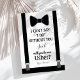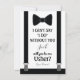 Pourquoi ne pas demander à quelqu'un d'être votre garçon d'honneur pour votre mariage à venir, choisissez ces cartes de garçon d'honneur classiques avec smoking noir, cravate papillon et bretelles. Cette invitation personnalisée fera que votre ami, frère, cousin, neveu, fils ou qui que vous choisissiez se sentira encore plus spécial. Cette invitation est facilement personnalisable en cliquant sur le bouton 'Personnaliser' sous l'image où vous pourrez modifier le texte, la police et la taille.
