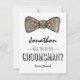 Carte de garçon d'honneur country tweed avec un noeud papillon burlap rustique, un texte simple et un motif de tissu tweed marron au verso. Ces cartes de mariage facilement personnalisables peuvent être modifiées pour répondre à vos besoins, de l'ajout de votre propre message personnel à la modification de la police et de la couleur.
