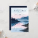 This wedding invitation features a serene watercolor landscape with soft blues, purples, and hints of pink, creating a calming and romantic atmosphere. The design showcases a tranquil lakeside scene at dusk or dawn, with silhouettes of trees and distant mountains reflected in the still waters below. Elegant typography is used for the customizable text, adding a personal touch to the whimsical and peaceful theme. Perfect for couples seeking an elegant and nature-inspired wedding celebration, this invitation sets the tone for a memorable event.
