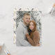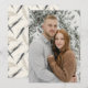 This wedding invitation features a serene winter scene with a couple standing closely in a snowy forest, surrounded by snow-covered evergreen trees. The design uses a soft color palette of muted grays and browns, creating a tranquil and intimate atmosphere. The photographic style captures the natural beauty of the setting, emphasizing warmth and connection amidst the cold environment. Perfect for couples who appreciate nature and understated elegance, this invitation sets the tone for a peaceful and heartfelt celebration.