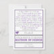 Invitation Serez-vous ma dame de honneur ? Poème pourpre/gris