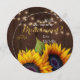 Personnalisé sera-tu ma demoiselle d'honneur / fille de fleur modifiable carte texte avec élégant tournesol jaune or rustique sur bois d'écorce brun foncé avec cordes de lumières scintillantes arrière - plan. Idéal pour l'été ou l'automne | élégant pays rustique | mariage à thème jardin extérieur.