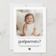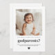 Vous cherchez une façon douce et significative de demander à un être aimé d'être les parents de votre bébé? Cette carte moderne et minimaliste est la meilleure façon de poser la question ! Que vous demandiez à un membre de votre famille ou à des amis proches, ce modèle vous aide à créer un moment de coeur qu'ils chériront pour toujours, avec une photo de votre petit.