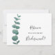 Cette carte de proposition simple et élégante présente une aquarelle originale d'un eucalyptus vert sprig sur un arrière - plan blanc. Customisez-le avec vos détails et votre message. Parce que nous créons notre oeuvre, vous ne trouverez pas cette image exacte d'autres designers. Aquarelle originale © Michele Davies.